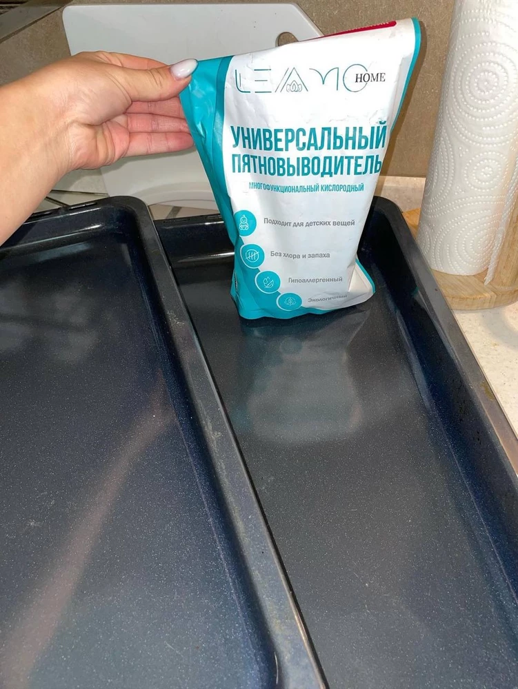Отличный помощник! Почистила в доме всё что только можно))) Посуду, одежду, обувь, белые рубашки - справляется хорошо, заливаю кипятком. Уже азарт даже появился) А с чем еще пятновыводитель справится)