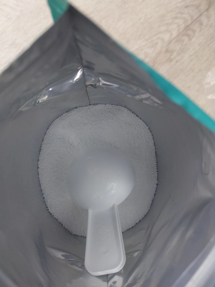 Пришло целое, упаковка не повреждена, мерная ложка в комплекте. Работает тоже супер, пока пробовала только на детской и своей одежде.